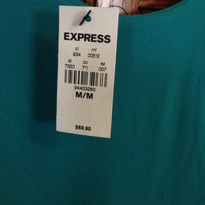 Brand new never worn pretty dress from Express! Perfect for spring/summer/fall. Can be dressed up with heels or down with booties and a jacket. Its a gorgeous shade of teal, has a scoop back, falls above the knee and sleeves go to elbow.