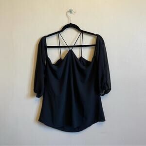 Details: cut out blouse from Express lace fringe v neckline elegant classy cold shoulder