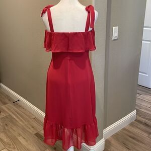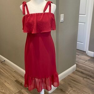 Express MIDI Ruffle Dress that Ties at the Shoulders