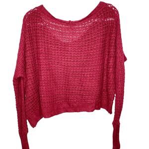 Express Maroon Oversized Open Cable Knit Cropped Sweater Small