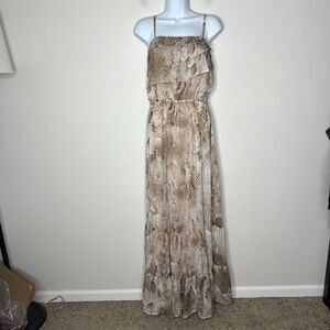 Express Maxi Dress Womens Medium Flowy Tiered Animal Print Mesh Chiffon Boho