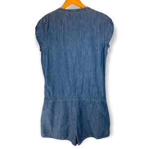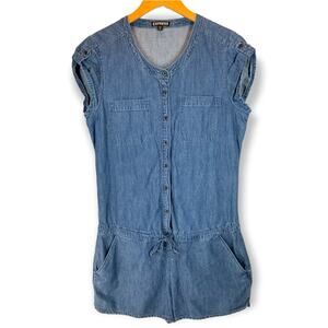 Express | Medium | Sleeveless Denim Blue Chambray Romper Button Down Tie Waist