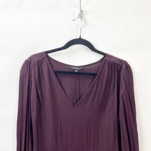 Express Medium Womens Burgundy Maroon Red V-Neck Long Sleeve Shift Dress