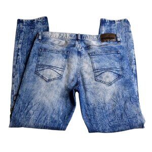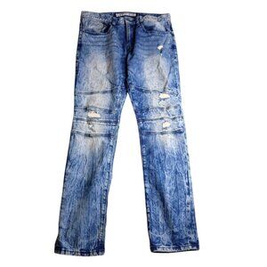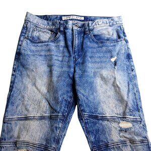 Express Mens Alec Super Skinny Fit Jeans 32 Distressed Stonewashed Moto Stretch