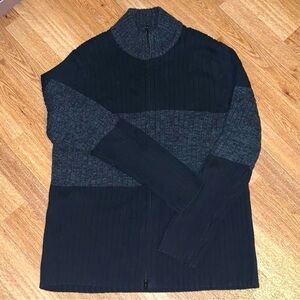 Express Men's Black and Gray Zip-Up Sweater. Size XL