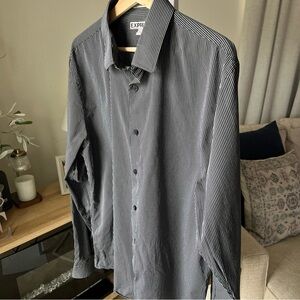 Express Men’s Black/white Fitted Longsleeve Striped Button Up Size XL 17-17.5