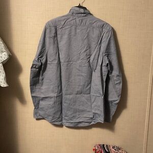 Casual button-down shirt with a sleek design. Features a subtle logo on the chest. Ideal for everyday wear.