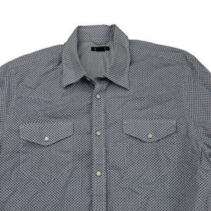 Express Mens Blue Floral Pearl Snap Long Sleeve Button-Down Shirt 16-16.5 Pockets L