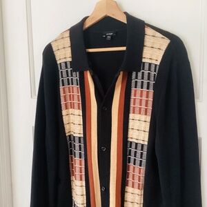 Express Men’s Button Up Collated Sweater Size L Cotton Preppy Brown Black Woven