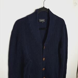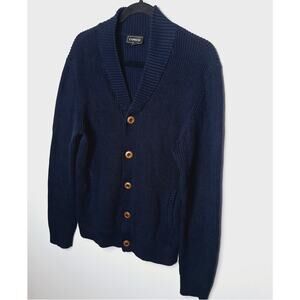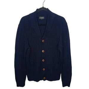 Express Men's Cardigan Sweater Grandpa Medium Navy Shawl Collar Dapper Preppy Cotton