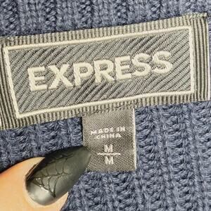 Express Men's Cardigan Sweater Grandpa Medium Navy Shawl Collar Preppy Cotton