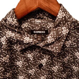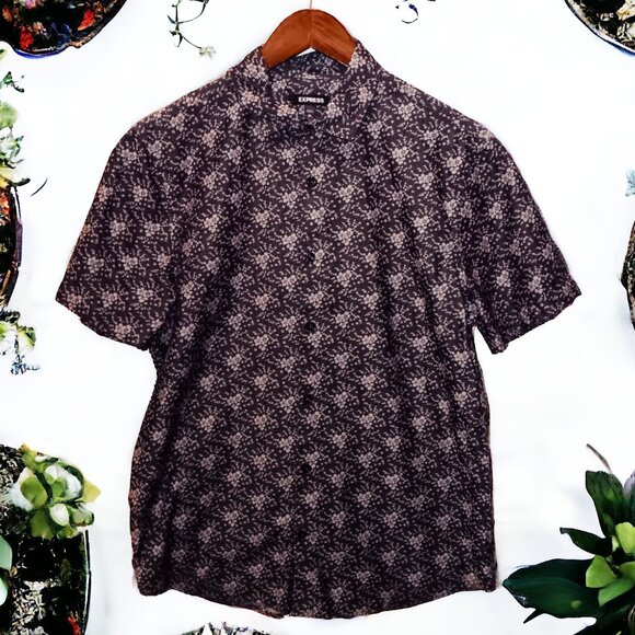 Express ★ Men's Casual Short Sleeve Button-Up ★ Vollos Gothic Floral Print