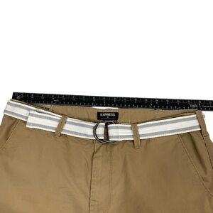 Express Mens Classic Fit At The Knee Shorts Size 36 Tan Belted Chino.