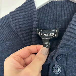 Express Men’s Dark Blue Button Up Cotton Sweater - Medium.