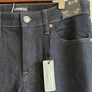 Sleek dark denim jeans from Express. Slim fit for modern style. Versatile and comfortable.