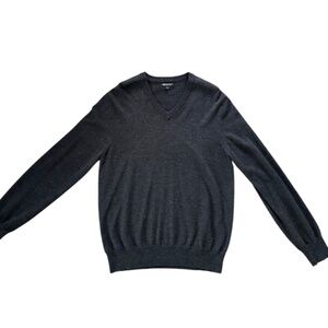 Express Men's Dark Grey 100% Merino Wool V-Neck Sweater Size M