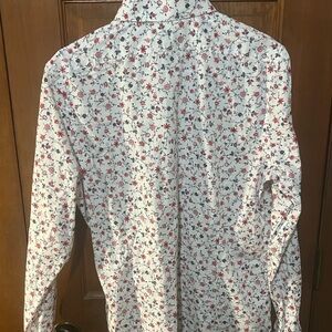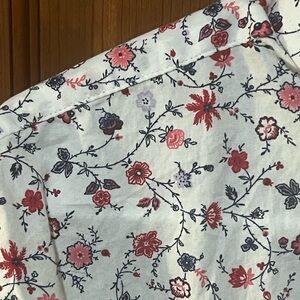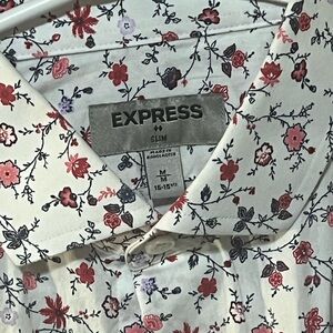 Elevate your style with the Express Men's Floral Shirt. Featuring a vibrant red floral pattern on a crisp white background, this shirt is perfect for any occasion. Experience comfort and fashion with Express.