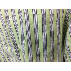 Express Mens Irish Linen Green Blue Striped Button-Up Shirt Size Large