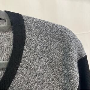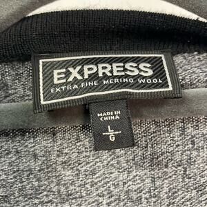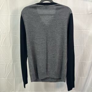 Express Men’s L V-Neck Long Sleeve Color-block Merino Wool Sweater Black Grey