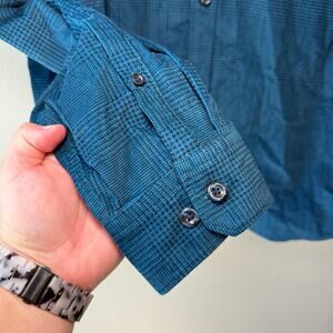 Express Men's Long Sleeve Corduroy Plaid Button Dress Shirt Blue Size Medium