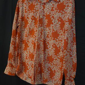 Express Men’s Long Sleeve Size S Dress Shirt Orange W White Flowers Button Up