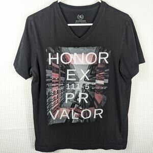 Express Men’s M Black Graphic V-Neck T-Shirt 100% Peruvian Cotton Valor Print
