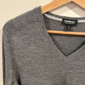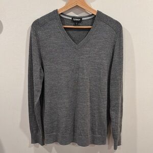 Express Men's Merino Wool Blend V-Neck Long Sleeve Sweater Gray Size M