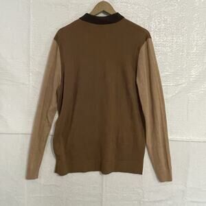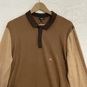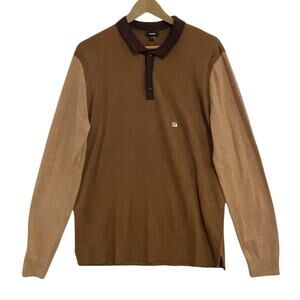 Express Men’s Merino Wool Polo Sweater Large Brown Color Block Long Sleeve NEW