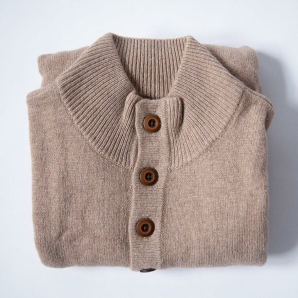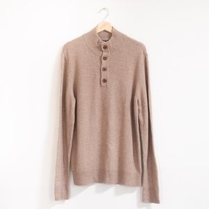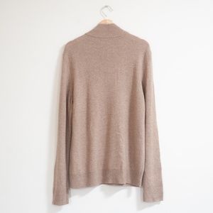 Soft and cozy light brown wool blend sweater from Express. Features brown buttons a quarter of the way down the front that can be buttoned up or left open. New with tags. In excellent condition. No flaws.