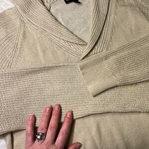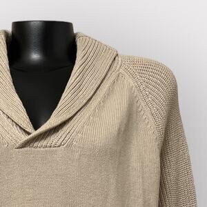 Express Mens Popover Shawl Collar Sweater sz L Twee Preppy Long Sleeve Tan Beige