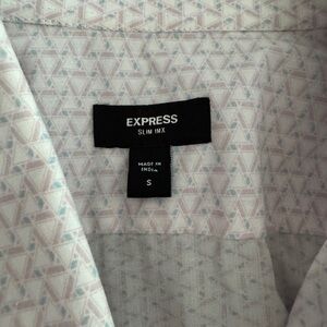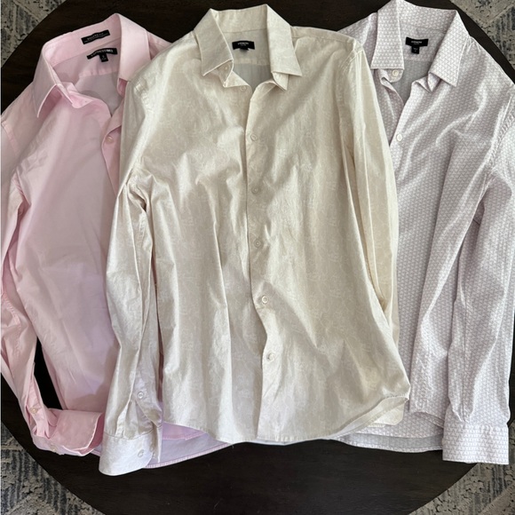 Stylish dress shirts by Express. Includes pink, cream, and white options. Perfect for formal occasions.