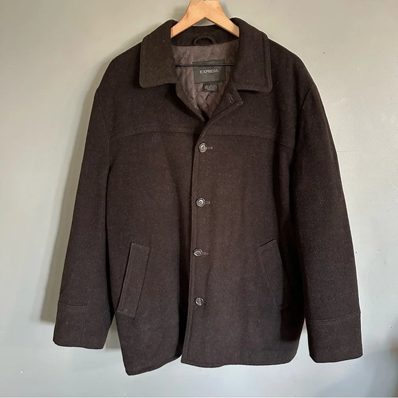 Express Men's Single-Breasted Wool Coat. 100% Wool.