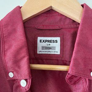 Express Men's Size Large Fitted Button Down Up Dress Shirt Dark Red
