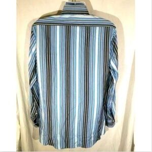 Express Men's Striped Blue Dress Shirt Medium