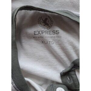 Express Mens TShirt XL White Gray Henley Short Sleeve Logo Gorpcore Classicore