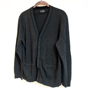 Express Men’s V Neck Cotton Cardigan Sweater Gray Black Button Down Medium