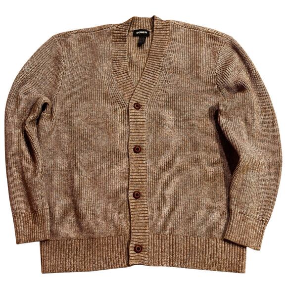 Express Men’s Wool Blend Heathered Tan V Neck Cardigan Size Large Conscious Edit
