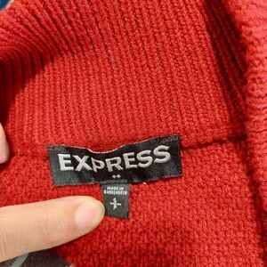 Maroon zip-up sweater by Express. Features a textured knit and front pockets. Ideal for layering.