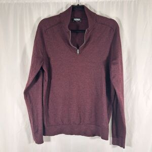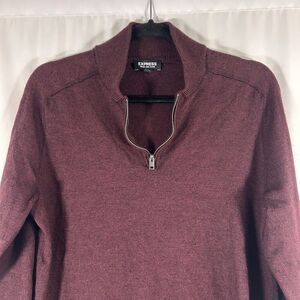 Express Merino Wool Blend Sweater Women's Large Red 1/4 Zip Long Sleeve Pullover