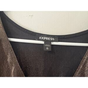 Express Metallic Brown Deep V-Neck Long Sleeve Bodysuit – Size XL, Party Top