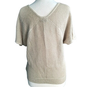 Express tanish sweater with gold metallic threads woven in.
