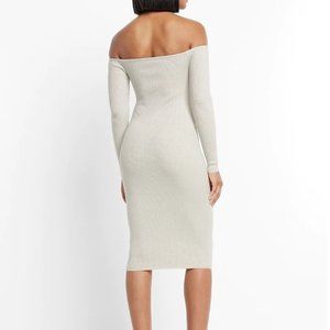 Express Metallic Ribbed Off the Shoulder V-Wire Midi Sweater Dress