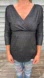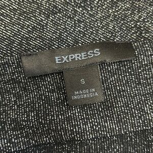 Express | Metallic Shimmer Blouse Deep V-neck 3/4 Sleeve Black/Silver S