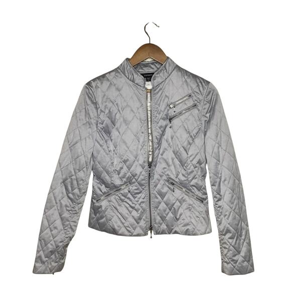 Express Metallic Silver Quilted Moto Style Zip Jacket Size 8