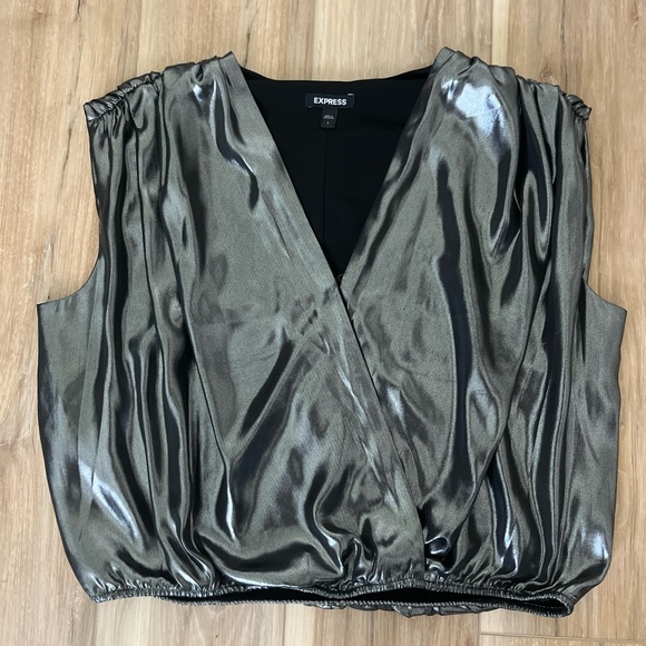 Express metallic silver crossover top size L Used once in excellent condition