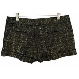Express Metallic Tweed Shorts Womens Size 6 Black Gold Pockets Cuffed Lined Modern Y2K