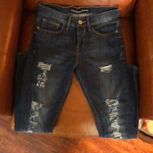 Only worn twice!!! Perfect condition. Mid Rise stretchy skinny jeans. Medium to dark wash.