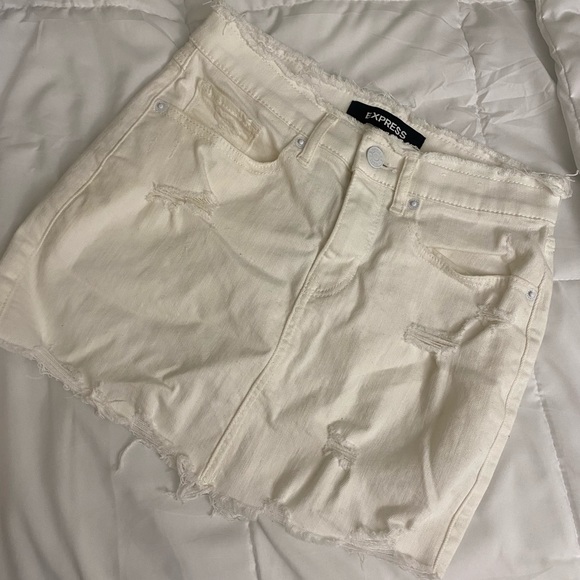 Distressed white denim mini skirt from Express, hardly worn great condition, true to size