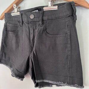 Express Mid Rise Shortie Charcoal Stretch Frayed Hem Shorts Size 4