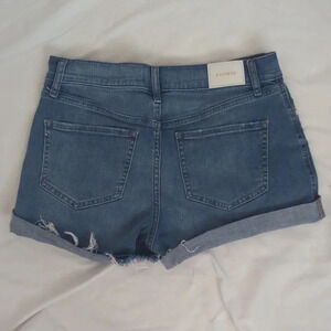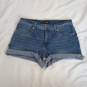 Express Mid Rise Shortie Denim Shorts, Color Medium Wash Size 4